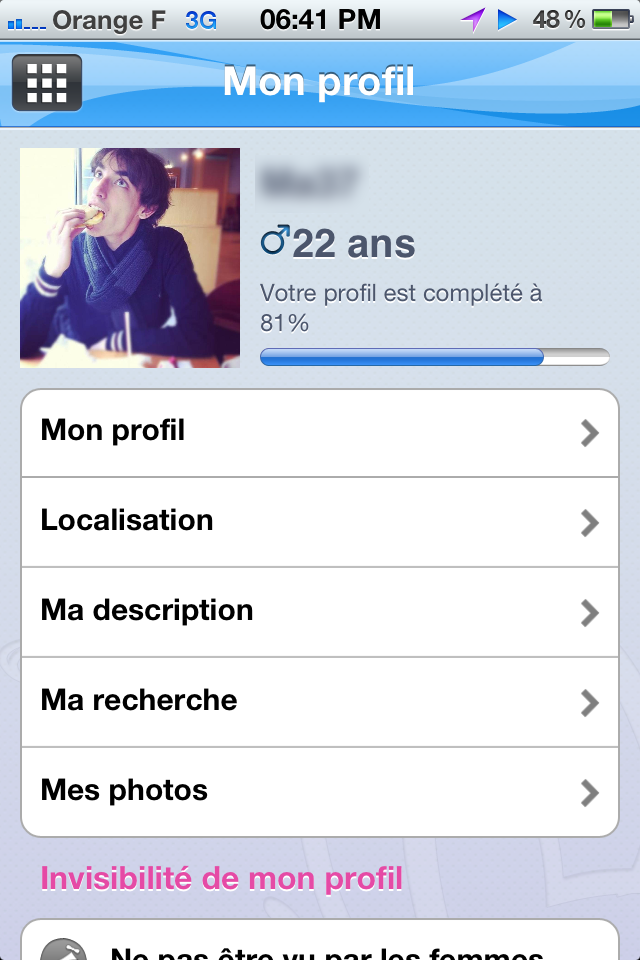 Comme tous les sites de rencontre, la version gratuite est inutile puisqu’elle ne permet ni de parler a quelqu’un ni de voir les messages recus. En gros, le site ou l’appli ne sert plus qu’a voir la tete de quelqu’un de celibataire dans les environs. Charge a nous de le pister comme un serial killer pour lui parler lol