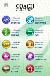 Pour les fans de quiz et les assoiffés de connaissances, App4Phone vous présente aujourd’hui Coach Culturel. Ce jeu de quiz, présenté sous la forme d’un QCM, se propose de vous amuser, tout en vous apprenant de nouvelles choses simplement. Au programme, plus de 3000 questions réparties dans diverses catégories, et à des degrés variables de difficulté (de 1 à 5).