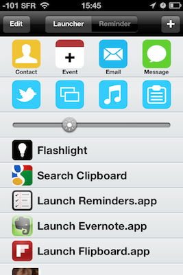 Tout en haut, vous voyez: Edit, Launcher (où nous sommes), Reminder (très pratique) et + (pour ajouter des éléments).