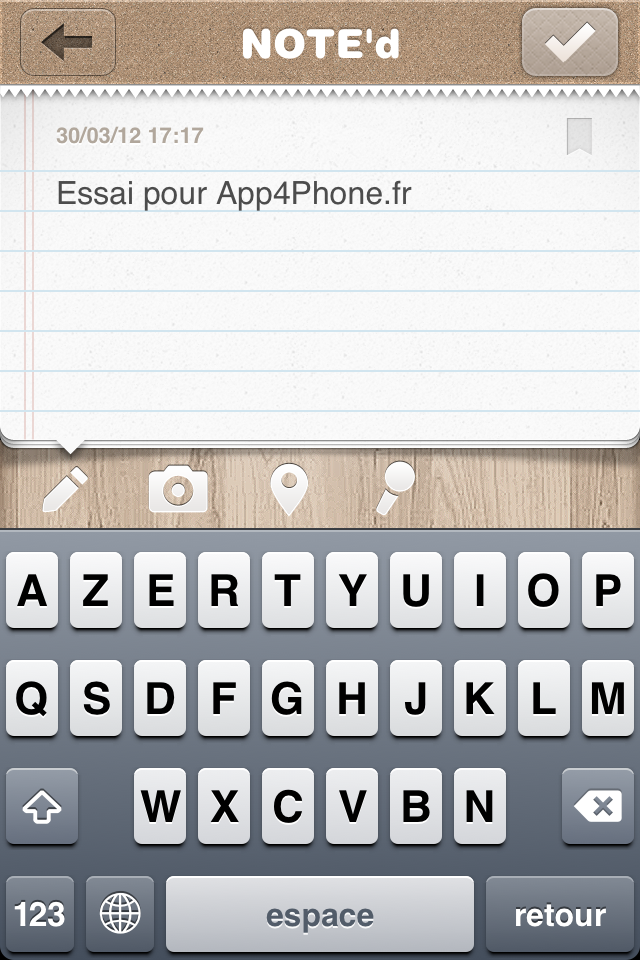 Au final, NOTE’d est déjà une application qui vaut son prix (1,59€) tant par ses graphismes travaillés que par ses fonctionnalités (notes texte, photos, localisation et enregistrement). On notera également qu’elle est pour l’instant plutôt jeune, ce qui encourage les développeurs à proposer de nouvelles maj (comme le fait de pouvoir mettre une note en fond d’écran). Pour ma part, je n’ai vraiment pas regretté mon achat: NOTE’d saura être le pense-bête qu’il vous faut!