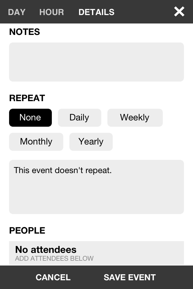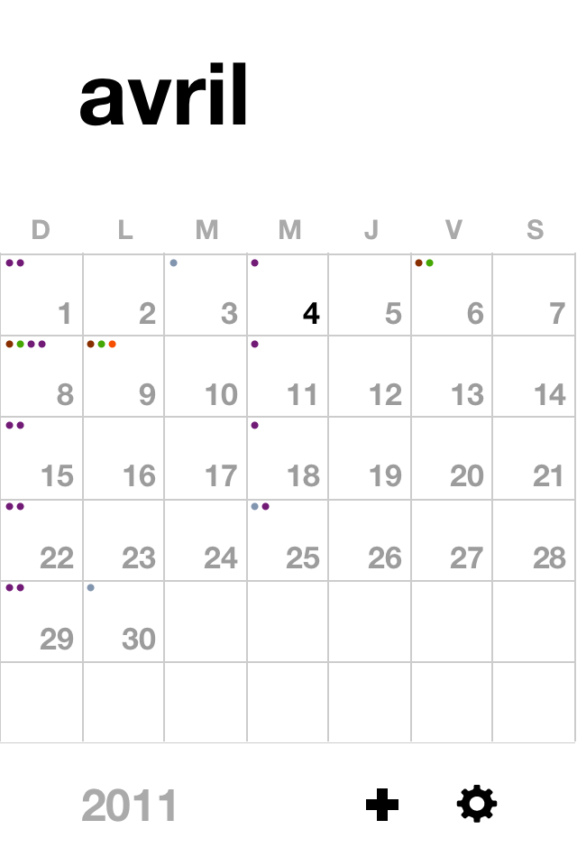 En touchant un jour précis, l’application ouvre ses événements correspondants en plein écran afin de savoir à quoi correspondent ces petits points énigmatiques. Le tout offre vraiment une interface très claire, qui permet de naviguer directement sur les autres jours à partir du même écran (à l’aide d’un slide vers le bas ou le haut).