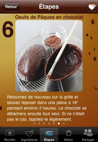 Une autre application de cuisine orientée délices de Pâques (forcement chocolatés). Celle-ci est payante (contrairement à la précédente) et propose quelques services et fonctionnalités supplémentaires, avec une recherche de recettes détaillée (par ingrédients, nom, temps…), une adaptation des quantités en fonction du nombre de personnes, un convertisseur d’unité assez pratique, pas de connexion internet requise.