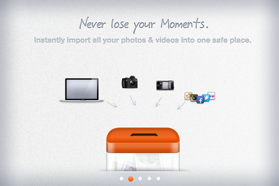 A l’ouverture de l’app, vous pouvez regarder une petite présentation du principe de ThisLife. Comme cité plus haut, l’application va vous permettre d’organiser vos photos favorites sous forme de Timeline, vous permettant de garder en mémoire vos moments préférés au fil du temps.