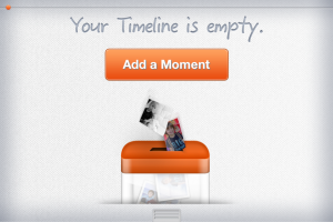 Passons maintenant à l’application en elle-même. Au début, votre Timeline est évidemment vide, et il va donc falloir lui rajouter des photos ou des vidéos.
