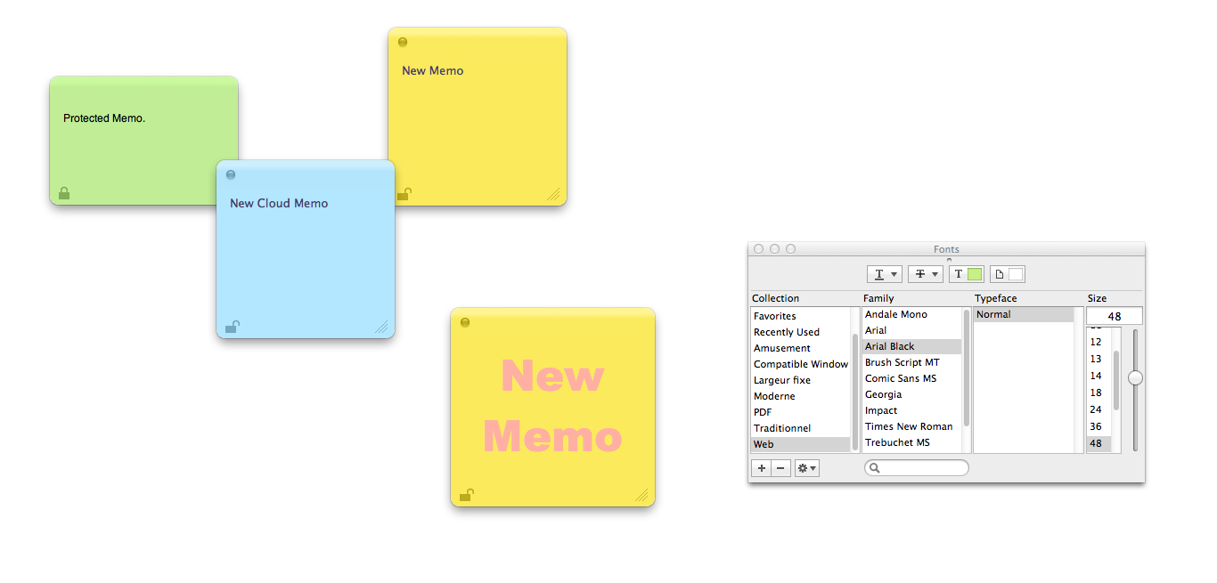 Encore une belle fonctionnalité pour Memo: comme l’application est également disponible pour 0,79€ sur l’AppStore pour vos iDevices (sous le nom de Memo – Sticky Notes), vous pouvez synchroniser vos notes dans le cloud! Pour cela, il suffit de créer une nouvelle note Cloud, qui s’affichera alors en bleu sur votre bureau.