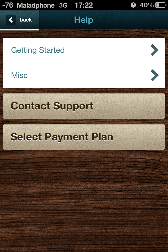 Au niveau de l’application, c’est très joli, graphique, bien cloisonné. Le côté « boiserie » et les couleurs pastels amènent un côté rassurant, apaisant, qui aide à se fixer sur le sérieux de l’objectif, tout en se trouvant dans un cadre classique d’application.