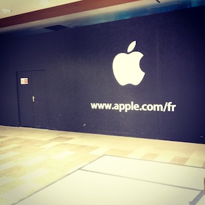 Apple vous invite tous, à venir à l’ouverture prévue dans le centre commercial des 4 temps situé sur le parvis de la Défense. Pour l’instant, le magasin est recouvert de la « fameuse » couverture noire.