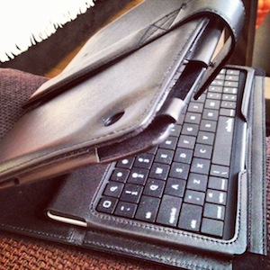 Au niveau de l’utilisation, c’est assez déroutant au départ… Le clavier ne répond pas exactement comme celui de mon Mac, et un petit temps d’adaptation est nécessaire. Après quelques minutes, tout roule, et on prend plaisir à utiliser le clavier. Petit hic tout de même, il semble que Sena ne propose que le modèle QWERTY (version US oblige). Pas très gênant, à l’utilisation (possibilité de changer la langue de l’iPad et de basculer en français / anglais).
