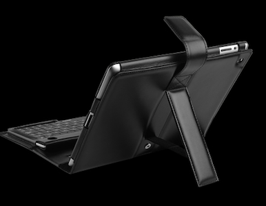 Un pied en cuir (munie d’une pression) se déplie afin de stabiliser votre tablette et la tenir bien droite. Le clavier est muni des caractères classiques, et propose également quelques touches astucieuses : bouton home, pause, play, activer/couper le son, masquer le clavier, activer le cadre numérique de l’iPad, verrouiller l’iPad. Ces fonctions sont bien pensées, et sont agréables d’utilisation directement sur le clavier.