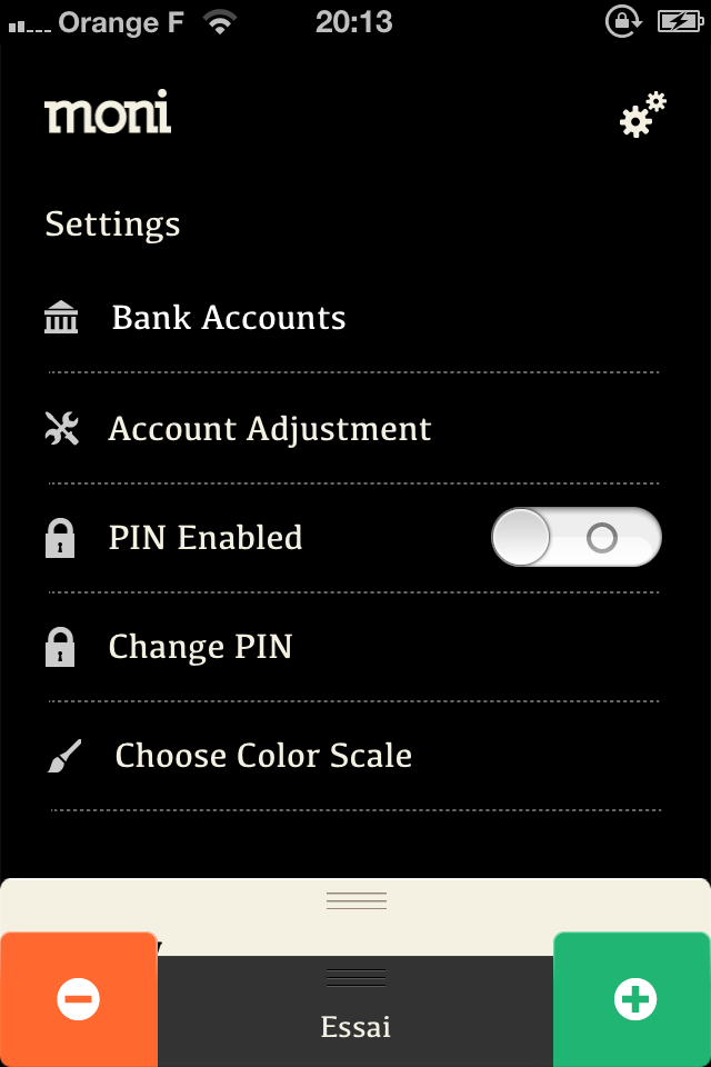 L’application est vraiment débarrassée de toute fonctionnalité superflue. Les couleurs permettent vraiment de voir en un clin d’oeil où l’on se trouve dans son budget. De plus, il est possible de protéger l’application des regards indiscrets grâce à un code d’accès.
