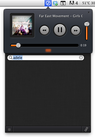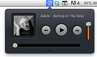En fait, l’application va simplement placer une icône « Musique » dans votre barre de menu. Il vous suffira alors de cliquer dessus pour ouvrir un mini-lecteur plutôt sympathique à l’oeil, vous permettant rapidement de changer de chanson, d’ajuster le volume ou de mettre iTunes en pause.