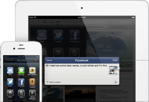 Twitter était la vedette d’iOS5, Facebook sera la vedette d’iOS6. Le réseau social le plus populaire au monde est désormais intégré à la base du système d’Apple, ce qui vous permettra de partager aisément vos photographies, vos pages web préférées… Mais également de synchroniser vos contacts du carnet d’adresses avec vos amis Facebook, afin de récupérer dates d’anniversaire et autres informations.