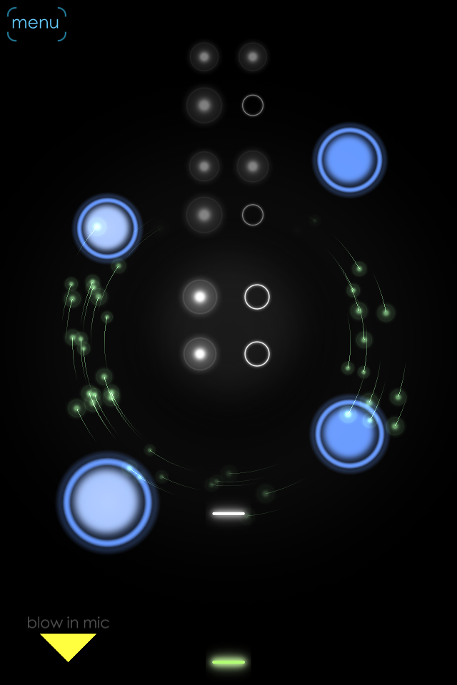 Une fois votre chanson choisie, vous devrez utiliser vos doigts sur l’écran de votre iPhone pour faire une note, et souffler dans le micro pour la jouer. La petite barre verte avance vers la blanche afin de vous indiquer pendant combien de temps souffler, tandis que les ronds blancs vous montrent le doigté à adopter.