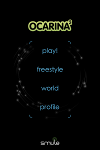 Ocarina 2 nous propose un tout nouveau menu: jouer, freestyle, monde, et profil. En effet, l’application se veut plus en accord avec notre temps, et s’ouvre donc au social.
