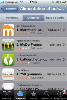 C’est un onglet « Alimentation et boissons » qui voit le jour et va nous permettre de nous y retrouver plus facilement parmi les quelques 650000 applications que comprend l’AppStore. Il est composé d’applications de livres de cuisine, de livres de cocktail, de restauration rapide ou encore de guides de restaurant.