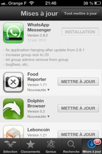 - Possibilité d’apercevoir le contenu des mises à jour d’applications de façon simplifiée (le descriptif apparaît en cliquant sur « Nouveautés »)