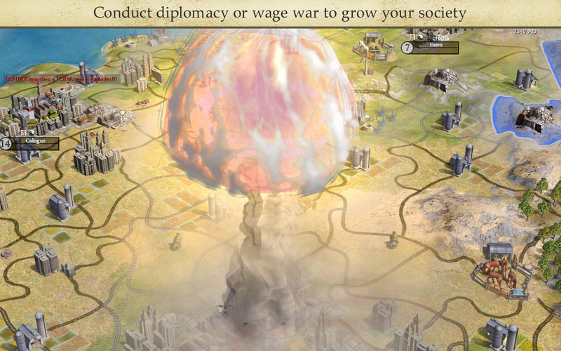 Le jeu commence sur une carte dont seule une petite partie est visible, le reste étant recouvert par un épais brouillard de guerre. Vous devez commencer à développer votre ville avec les ressources présentes alentour, mais aussi penser à entraîner des soldats pour la défendre d’éventuelles attaques extérieures, selon les options de jeu que vous avez choisi. Vous pourrez ensuite songer à développer de nouvelles villes, voire aller conquérir celles des ennemis.