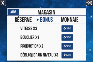 En outre, il est vrai que les graphismes sont vraiment limités, rien de bien attrayant excepté une galaxie rotative qui rajoute un petit aspect fun à une ambiance pour le moins trop plate. N’espérez pas d’éclats de sons, de bruits de guerre spatiale, ou autres bruitages sympathiques qui pourraient vous mettre dans l’ambiance. A ce niveau là, c’est vraiment bâclé et ça laisse un gout amer.