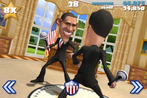 En cette période d’élections présidentielles aux Etats-Unis, certains éditeurs de jeu comme Epic Games (créateur d’Infinity Blade) s’amusent à mettre en scène le duel annoncé entre Barack Obama et Mitt Romney. Cette course à la Maison Blanche est mise en scène dans le jeu gratuit Vote!!! (Télécharger sur l’App Store), et elle devient pour le coup beaucoup moins politique et diplomatique, et d’autant plus amusante et décalée. Les débats se résument à des combats loufoques dans diverses arènes, où vous devrez utiliser des armes plus qu’originales pour venir à bout de votre interlocuteur.