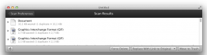 Une fois le scan effectué, les fichiers en double s’affichent. Vous devez alors cocher ceux que vous souhaitez supprimer. Pour vous aider à choisir, un simple appui sur la touche « espace » vous permettra d’ouvrir un aperçu rapide. Petit plus de l’application: Singlemizer peut aussi trouver les doubles de votre librairie iPhoto, un atout non négligeable si vous en possédez beaucoup.