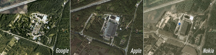Moi je trouve que la cartographie d’Apple a des image satellite plus récente que le service de Google maps mais il on encore beaucoup de boulot sur ce sujet. Les secrets confidentiel comme les bases aérienne ne sont pas masquer en France non plus.