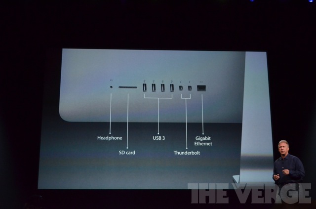 Deux microphones seront intégrés ainsi que deux haut-parleurs et une caméra FaceTime HD. Les deux microphones permettent d’atténuer les bruits environnants et de se focaliser sur l’élocuteur. Vous pourrez stocker tout ce que vous souhaitez, l’iMac pouvant atteindre une capacité de 3 To de disque dur et vous pourrez avoir jusqu’à 32 Go de RAM ! Il y aura une prise Jack, deux pour le Thunderbolt, quatre pour l’USB, et une pour le câble Ethernet.
