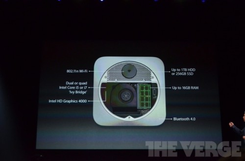 Peu de nouveautés concernant Le Mac Mini. Celui-ci n’adopte aucun changement de design et coûterait 599$ à son acquéreur pour un premier prix, qui offre 4Go de RAM, 500 GO de disque dur et un processeur i5.