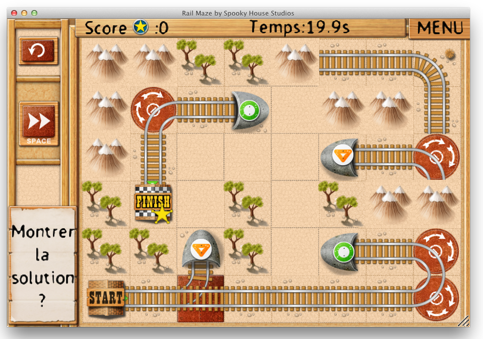 En faisant quelques recherches sur le Mac AppStore, je suis tombée sur ce petit jeu plutôt bien classé dans le top gratuit. Le concept ayant l’air sympa, j’ai décidé d’en faire l’App4Mac du jour. Alors Rail Maze, c’est quoi? Eh bien tout simplement un énième jeu de puzzle (à croire qu’il n’y a que ça sur l’AppStore), où cette fois-ci vous devrez adapter les rails et éviter les obstacles pour mener votre train à la bonne destination.