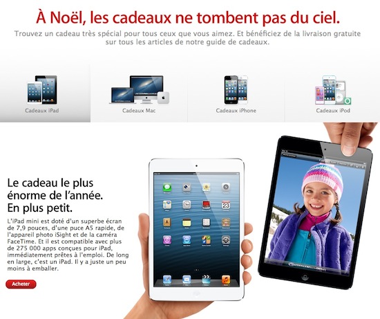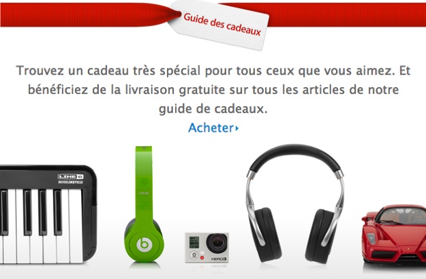 Vous aurez donc la possibilité de commander un AR Drone, des voitures téléguidées grâce à votre appareil à la pomme ou encore de profiter d’un casque Beats ( Pour ma part, ce sera plutôt un iPad mini). À noter que La possibilité de graver au laser votre iPod ou iPad est désormais proposée gratuitement. Par ailleurs, la livraison sera gratuite à partir d’un panier de commande supérieur à 120€ TTC.