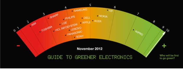 L’ONG Greenpeace vient de publier son Guide to Greener Eletronics, classement qui référence et caractérise les efforts des entreprises dans la gestion et la communication environnementales. Apple perd deux places et obtient un petit score de 4,5/10. Notons les meilleures notes d’Acer, Nokia et HP dont les scores oscillent entre 5 et 6 sur 10. Wipro fait son entrée et occupe la tête du classement.