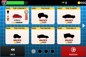 Revenons en à nos bolides. Comme précisé précédemment, 12 voitures sont disponibles (Et 12 voitures supplémentaires en achats in-app), et chacune d’entres elles peuvent être améliorées. Jusqu’à cinq fois ! Par contre, je n’ai pas vu en quoi elles sont améliorées, certainement une combinaison de vitesse de pointe, de vitesse de rotation… Et quand on sait qu’on a 54 missions par voiture (Soit 648 missions à terminer), cela implique de longues heures pour venir à bout de ce jeu 🙂