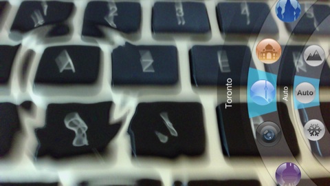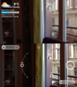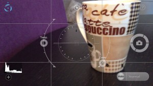 L’interface est simple d’utilisation et assez intuitive. On se croirait dans la commande de tir d’un avion de chasse. Les deux curseurs latéraux vous permettront de zoomer ou de gérer la température couleur (C’est la balance des blancs). De cette interface, un simple glissement de doigt latéral vous emmènera vers d’autres réglages avec un effet d’ondulation pour le style ! De là réglez la saturation, le contraste, la luminosité et l’acuité. Revenez à l’interface principale et faites de même dans l’autre sens. Vous découvrirez à nouveau de nouvelles fonctionnalités. Et oui, changez les filtres (vintage, froid, chaud…) ou activez le mode désiré (Nuit, Portrait, paysage…). Autant dire que vous n’avez plus le droit de prendre de photos ratées 🙂
