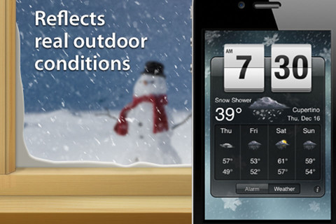Au menu de l’application gratuite du jour: Réveil Météo iHandy, une application réveil en apparence banale, qui cache pourtant quelques fonctionnalités bien choisies. En effet, moyennant un petit bandeau publicitaire en haut de l’application, Réveil Météo iHandy vous propose d’obtenir gratuitement un réveil de qualité pour votre iPhone, qui sera particulièrement mis en valeur si vous possédez un dock. On retrouve ainsi sur l’interface l’heure, la date, mais aussi le temps en fonction de votre localisation.