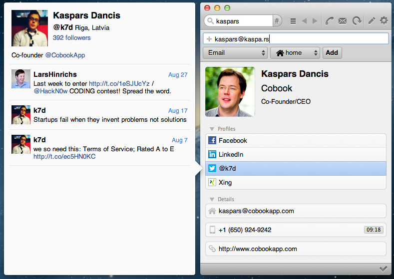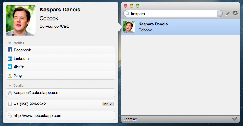 Il n’y a pas longtemps, nous vous présentions Cobook pour iPhone, une très bonne alternative à l’application native « Contacts ». Mais cette application est également disponible sur Mac, et vaut le coup d’œil. En effet, cette version est parfaitement adaptée à l’environnement OS X, et se niche en discrétion dans votre barre d’icônes pour vous offrir un accès rapide et fluide à l’ensemble de vos contacts.
