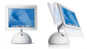 Le corps supérieur de la lampe est en faîte un ancien iMac. On retrouve ainsi l’ancien socle de l’iMac (version « Luxo »), aini que le bras orientable en aluminium de l’ordinateur pommé. La trappe du lecteur CD est encore visible sur le socle (ou l’actuel « chapeau » du luminaire).