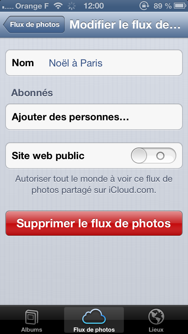 Il est maintenant temps d’ajouter les fameuses photos que vous voulez partager dans ce flux. Cliquez sur le flux en question et le bouton Modifier, situé en haut à gauche, le bouton Ajouter vous permet d’ajouter à votre guise les photos.