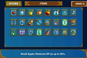 Contrairement à tous ces concurrents, vous ne pourrez pas récupérer d’objets, d’armes ou autres équipements sur les monstres. Seules quelques potions seront disponibles, les combats serviront essentiellement à faire évoluer vos héros. Pour récupérer des objets intéressants, il vous faudra voguer à travers le royaume et dénicher les coffres dissimulés un peu partout sur les maps. N’oublions pas le seul et unique magasin du jeu (malgré une carte assez étendue) où vous pourrez vous procurer des objets à des prix exorbitants. A vous de choisir !