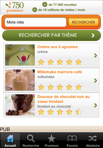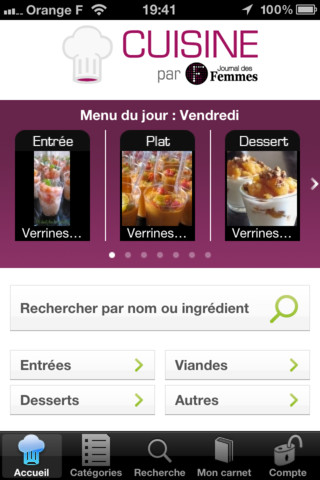 Cette application vous propose 77 000 recettes avec une sélection de 3 par jour pour vous y retrouver. Vous pouvez également rechercher une recette en tapant le nom de son chef.