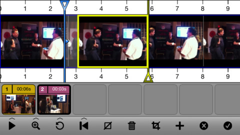 Bien sûr, l’ajout de transitions est également de la partie, vous permettant de créer des montages assez professionnels (dans la limite de ce qu’on peut faire sur un iDevice toutefois). Vous pouvez également ajouter des titres, mais aussi maîtriser au mieux le son de vos vidéos grâce au contrôle des courbes de volume. Le son de chaque bande vidéo est d’ailleurs indépendant des autres: vous pouvez donc faire varier individuellement chaque son, pour obtenir réellement le montage dont vous rêviez. Enfin, vous pourrez aussi ajouter du texte, ce qui peut s’avérer pratique si vous effectuez des mini-reportages, ne serait-ce que pour indiquer le nom d’une personne interviewée par exemple.