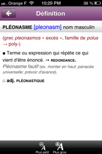 Mais nos deux éditeurs ont pensé à cette éventualité. Pour pallier à cela, l’application vous propose de consulter la définition complète des mots. Et c’est une vrai définition ici ! Contrairement à certains concurrents, la définition est compléte est détaillée, vous avez toutes les définitions et les déclinaisons des mots, sans oublier les synonymes.