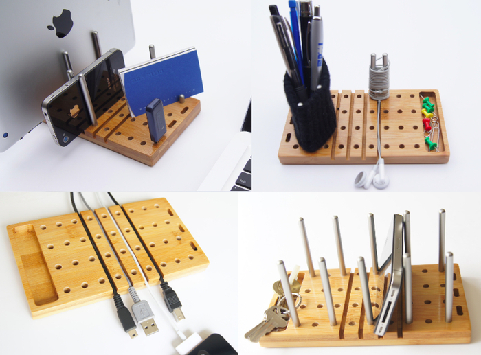 Régulièrement, je vous fais partager des projets innovants disponibles au financement sur le site KickStarter.fr. Aujourd’hui, je vous présente Modo, un outil simple mais ingénieux qui va aider les plus bordéliques d’entre vous. L’accessoire est composé d’une planche en bois à trous et de tiges en aluminium de différentes tailles. Modo peut organiser un certain nombre d’objets qui embarrasse votre bureau !