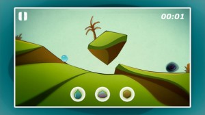 Le jeu se joue par plate-forme donc. Vous débuterez d’un point et l’arrivée se fera à un autre point. Vous devez alors choisir un élément pour avancer. Vous aurez le choix entre une goutte d’eau, qui tombera et roulera sur le sol, un nuage qui vous fera vous envolez et servira à passer les obstacles au sol et une pierre, qui tombera et roulera au sol.