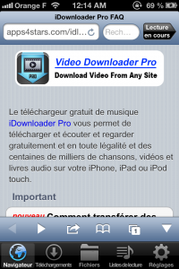 On aime tous écouter de la musique ou regarder des vidéos. Toutefois, les forfaits où la 3G est illimitée n’existent pas encore. Et quand on veut visionner une vidéo ou écouter une musique alors que notre forfait est épuisé, bah c’est foutu ! Il y a toujours Deezer mais il faut avoir l’option et c’est payant. Bref, pas facile tout ça. Mais heureusement que votre serviteur est là ! Je vous ai déniché l’application idéale, voici iDownloader Pro. Téléchargez puis stockez sur votre iPhone pour visionner sans limite ! N’est-ce pas merveilleux ?