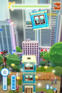 Le but du jeu est donc d’empiler des blocs pour former un immeuble le plus grand possible. Bien sûr, le bloc suivant est suspendu à un fil et effectue un mouvement de balancier, ce qui rend la tâche plus ardue. De plus, plus votre tour est haute et désaxée, plus elle oscillera avec le vent. Pour laisser tomber le bloc, il suffit simplement de toucher l’écran.