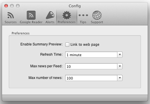 Quelques préférences sont également proposées, avec notamment la possibilité de désactiver l’aperçu de l’article pour atterrir directement sur la page web concernée, mais aussi de définir le temps d’actualisation ou encore le nombre limite de news par fil.