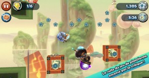 Au fil du jeu, de nouveaux ennemis apparaîtront. Chacun possède son propre point faible, qu’il faut atteindre avec un saut. Bien sûr, les premiers sont assez faciles à tuer, mais cela se corse par la suite puisque l’on voit apparaître des espèces volantes etc. Les graphismes sont en tout cas très sympathiques: il s’agit d’un univers bien propre à Cordy 2 et qu’on ne retrouvera dans aucun autre jeu sur l’AppStore. Les musiques sont un peu répétitives, mais cela est assez commun aux jeux de plateforme.