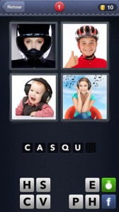 Pour exemple, prenez l’image ci dessus, on a un casque de moto, un casque de vélo, un casque audio, le mot qui met en commun ces 4 images est donc bien évidemment le mot « casque ». C’est facile pour celle-ci, mais d’autres vous poserons probablement plus de problèmes.