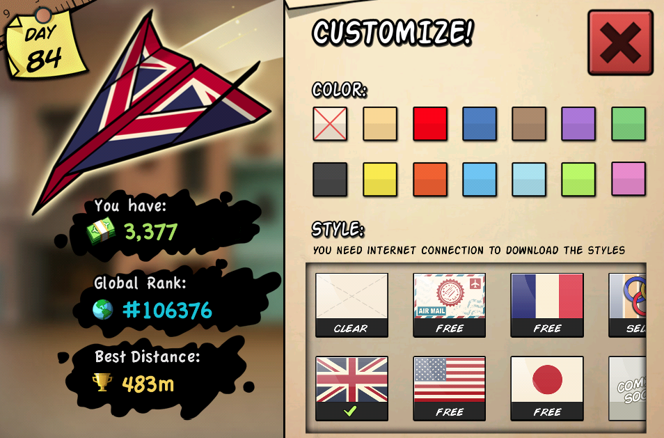 Et c’est parti donc pour un petit tour du monde en passant par Londres, Paris, l’Inde et plusieurs autres maps que vous découvrirez à travers ce périple. On commence donc comme tout petit enfant ou grand (sic) par décorer son avion de papier aux couleurs de différents pays ou bien d’une couleur neutre avant de l’élancer dans le vent londonien.