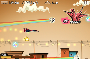Sur votre parcours, vous rencontrerez toutes sortes de choses comme des petits moulins à vent qui parfois éviteront un crash imminent ou bien des étoiles qui vous propulseront en avant. A noter que le jeu est compatible Game Center et que l’on y trouve de nombreux chalenges à réaliser donnant au jeux une durée de vie plus importante.