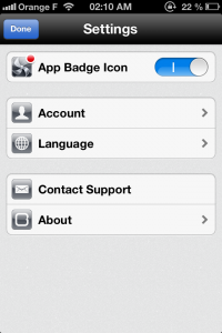Continuons donc maintenant avec les réglages généraux. Premier défaut, la langue. Pas de traduction en anglais. Certes, ce n’est pas utile ici, mais cela aurait toutefois été un grand plus, vous n’avez le choix qu’entre l’Italien et l’Anglais. Vous pourrez toujours contacter le support si vous souhaitez leur faire part de votre mécontentement. A noter la synchronisation avec l’application Mac si vous en avez un.